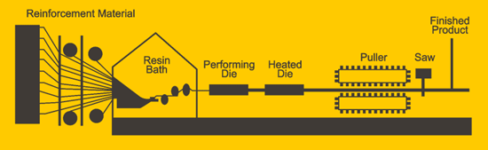 National Grating Structural FRP Products consist of pultruded fiberglass. Glass strands or rovings are fed through a machine where they are then wrapped in a glass woven fabric, and finally sealed with a resin.